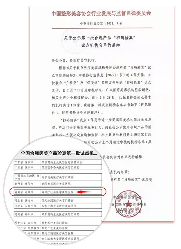 红妆尚医学美容连锁荣获第一批“扫码验真”试点机构